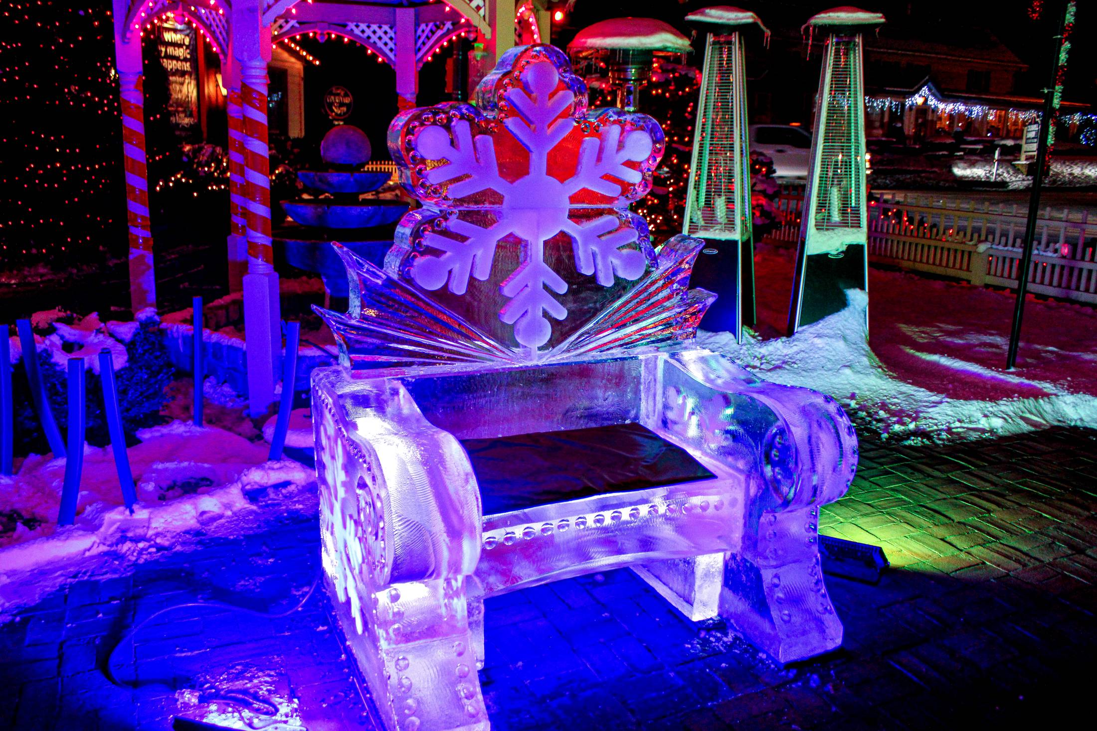 Guests can wander through a sparkling trail of hand-crafted ice sculptures, each one more impressive than the last, creating the perfect winter photo op spots for families and friends. Throughout the event, talented artists from Ice Concepts will be carving blocks of ice right before your eyes—kids especially love watching the sculptures come to life in real time! Live ice sculpting demonstrations take place on Fridays at 6 p.m. and Saturdays at 5 p.m., giving guests the chance to see these frozen works of art created from start to finish. And, “of course, no Fire & Frost Fun” weekend is complete without a stop at the photo-ready ice throne, the ultimate spot for a fun family picture.
