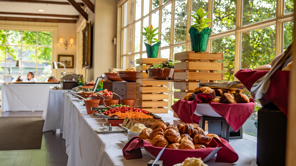 Enjoy brunch classics, carving and seafood stations, and housemade desserts at Cock ‘n Bull Restaurant. Click here to view the menu.