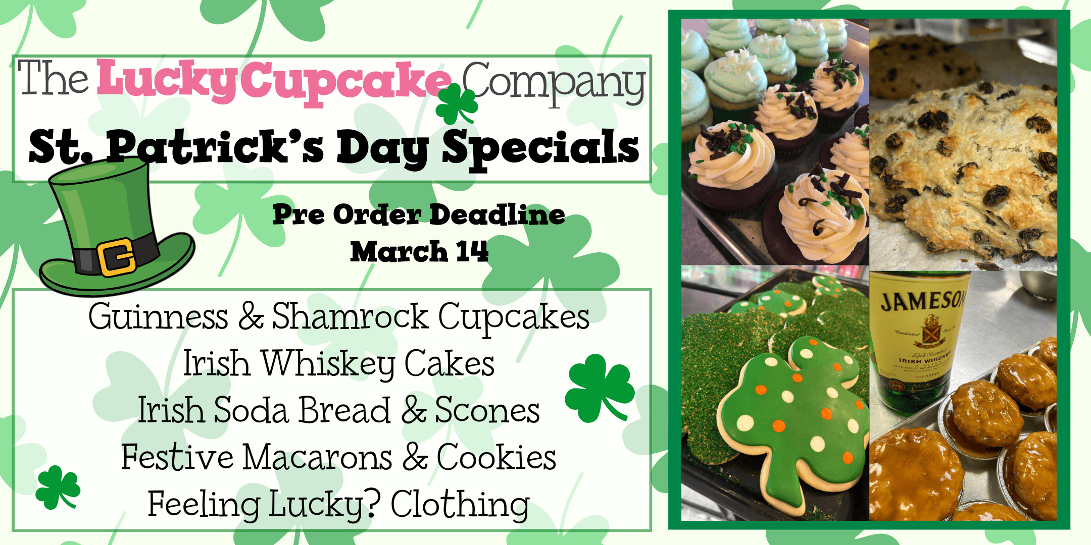 St. Patrick’s Bakery Menu at Lucky Cupcake Company